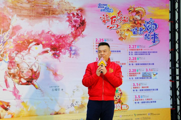活動由僑成國小女子舞龍隊開場,為今年苗栗火旁龍獻上第一舞,展現文化傳承的生命力,也彰顯巾幗不讓鬚眉的舞龍氣勢,為系列活動揭開序幕,期望馬年延續祝福與希望。