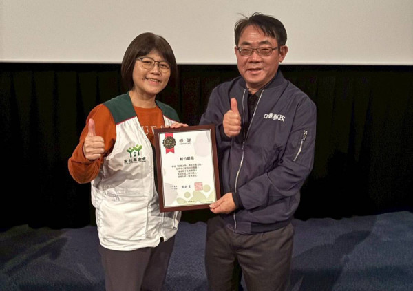 新竹郵局關懷在地公益團體,新竹家扶基金會(左)致贈感謝狀、新竹郵局局長沈佛龍(右)。(圖/新竹郵局 提供)