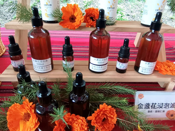 金盞花浸泡油-農業部桃園區農業改良場推動「金盞花浸漬油技術移轉」。(圖/記者姜晴 攝)