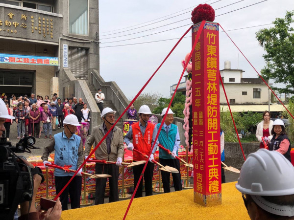 新竹縣「竹東鎮芎林堤防」開工動土典禮,3月26日在竹東鎮頭前溪的對岸陸豐里舉行,由竹東鎮長郭遠彰主持,現場賓客雲集,經濟部水利署第二河川分署長楊人傑、新竹縣前縣長鄭永金、陸豐里長呂學清及立委、議員、里長、社區發展協會理事長李明章、陸豐國小主任等人一同祈福動土,共同見證竹東這項水岸河堤綠美化建設,正式啟動打造陸豐里成為「大河城」,如「八里左岸」的水岸休閒勝地。