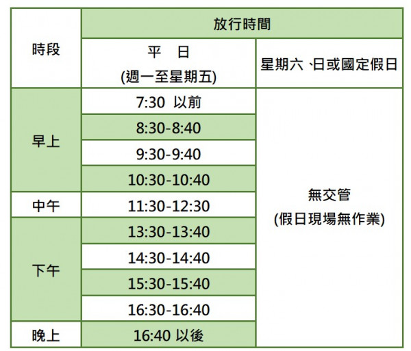 交通管制期間,請用路人耐心等候並請配合交管人員的指揮;若遇緊急救難或其他特殊需求,請通報現場交管人員,在安全無虞之情況下機動放行,造成不便敬請見諒。